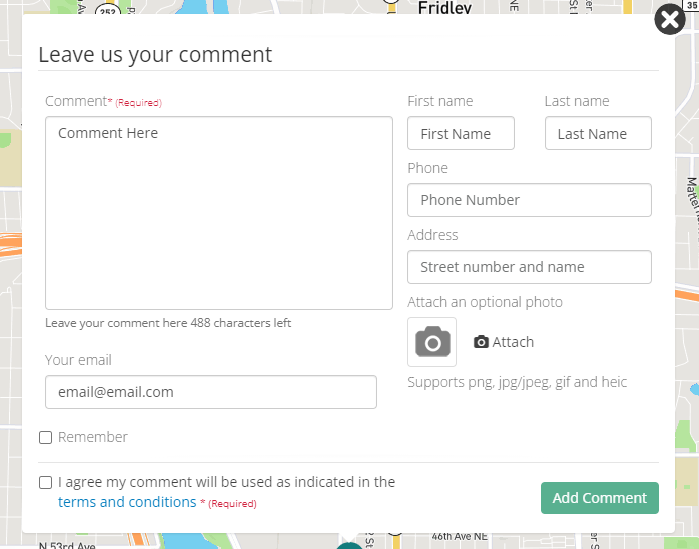 Instructions for using this map: Drag a comment from the top of your screen to your desired location on the map.